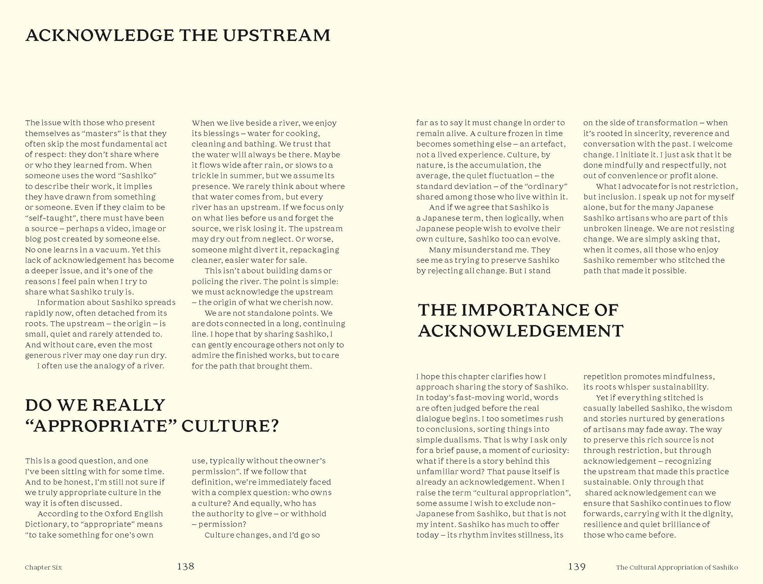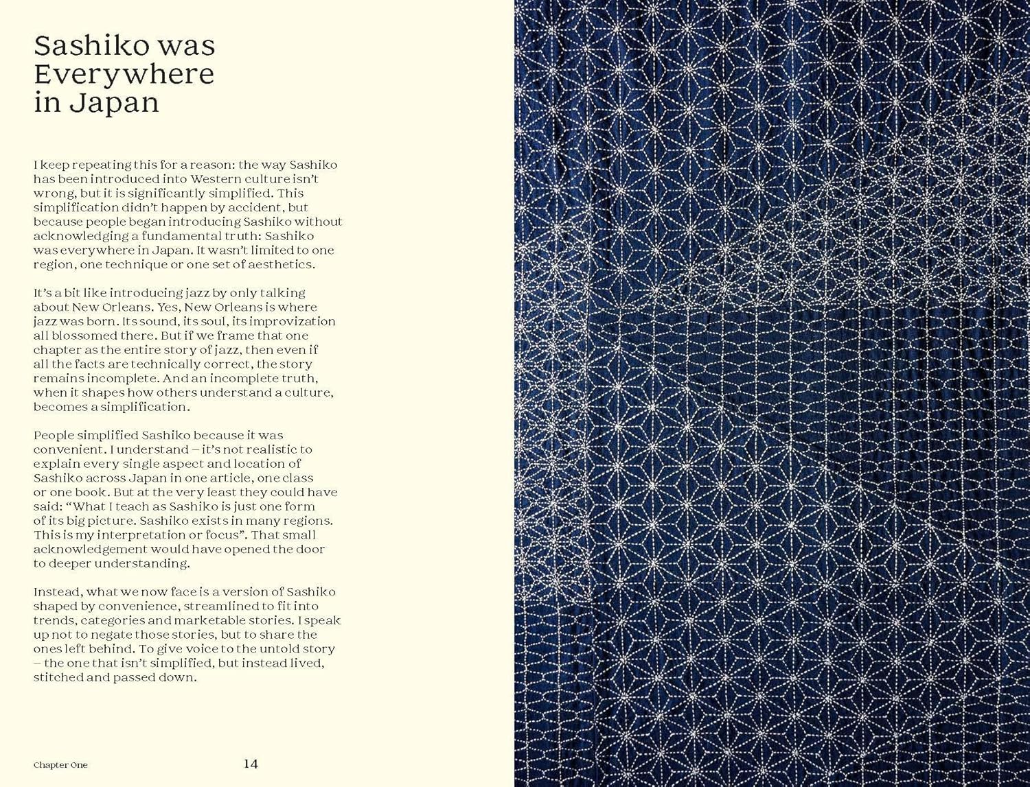 Boken lĂŠrer deg ikke bare Ă„ verdsette sashiko, den setter ogsĂ„ et eksempel for hvordan vi selv kan verdsette egne hĂ„ndverkstradisjoner og forstĂ„ mer om hvor vi har kommet fra, den gangen det Ă„ kunne forme tekstiler med nĂ„l og trĂ„d i hverdagen ikke var en hobby, men en livsviktig ferdighet og en kobling mellom, og beskyttelse fra, naturen.Â