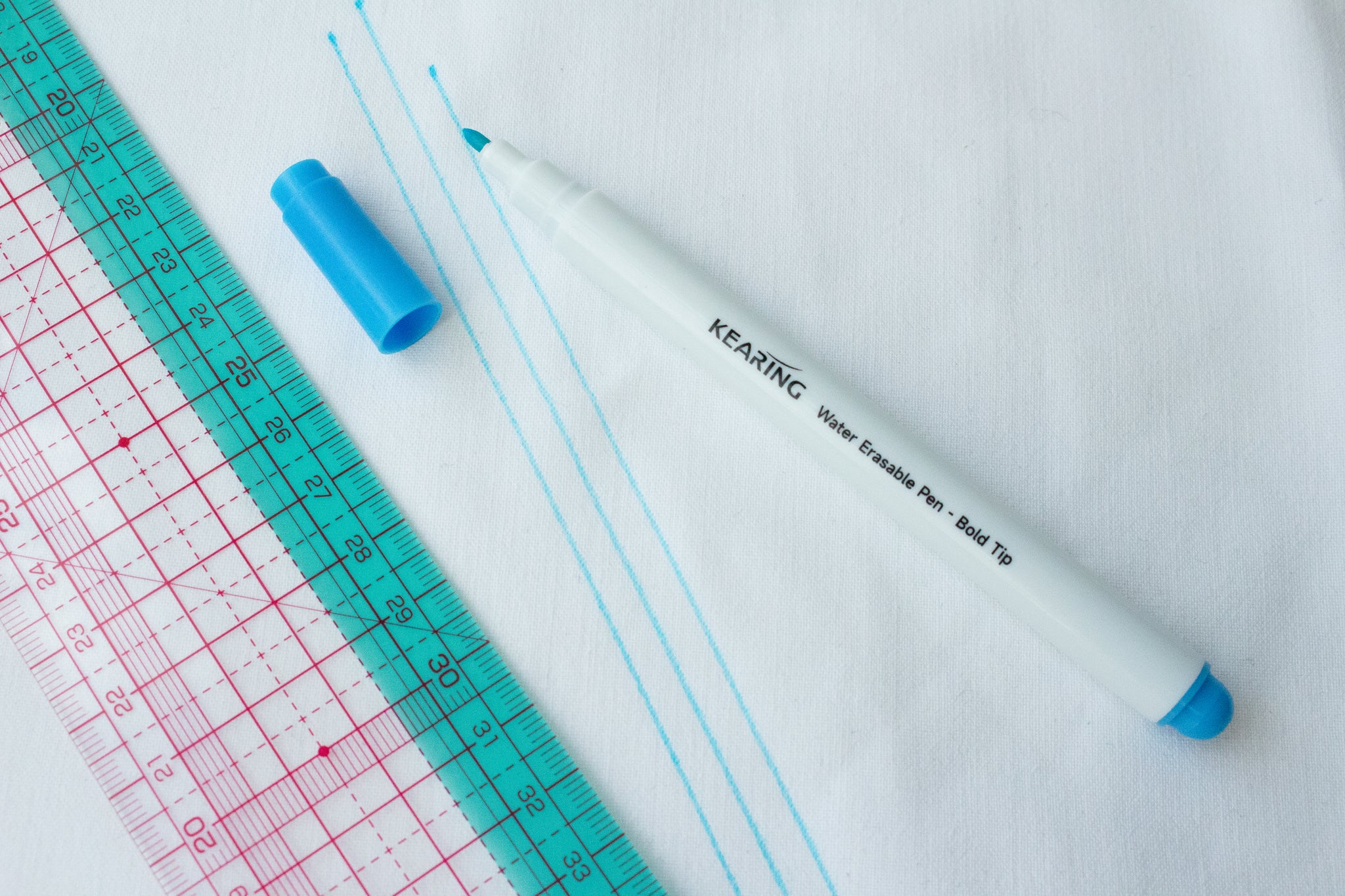 Denne markeringspennen fra Kearing går bort med vann. Kjempepraktisk for å tegne linjer, mønster eller markeringer på søm og reparasjonsprosjektene dine enten det er broderi, sashiko eller plassering av lapper.